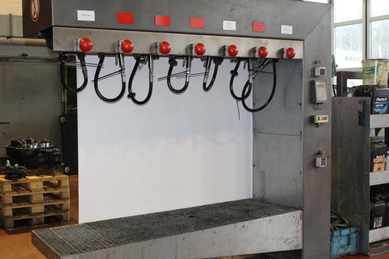 Ölstation für 7 Ölsorten mit Einfüllpistolen und Zählwerk für schnelle Kundendienste